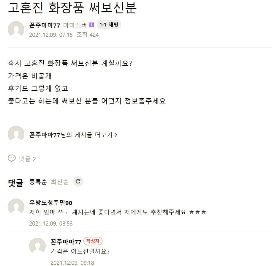 - 고혼진 세트(크림+에센스+마스크팩) 가격 : 70만원 내외