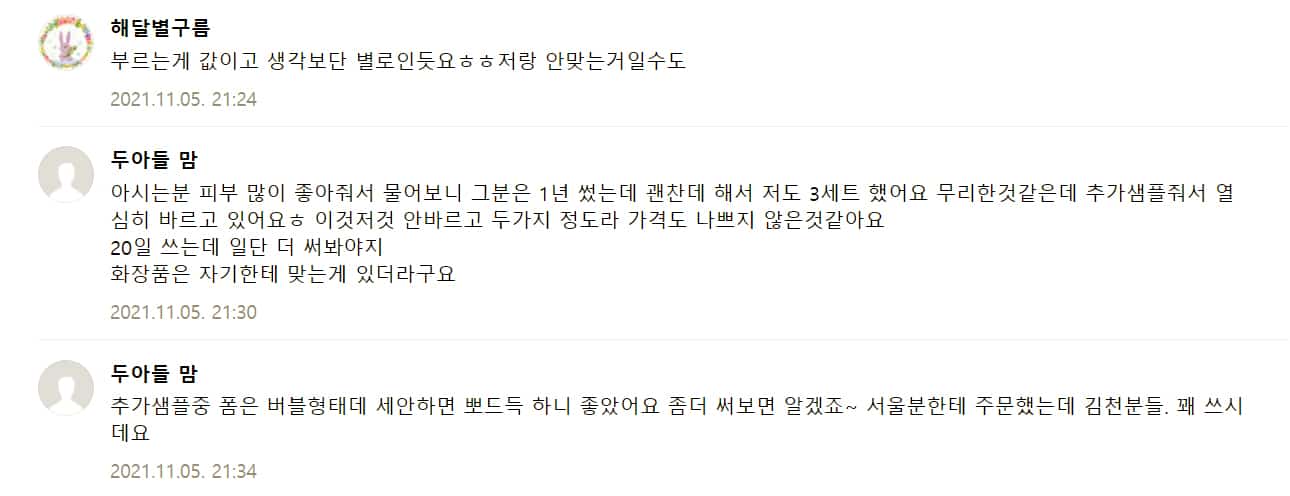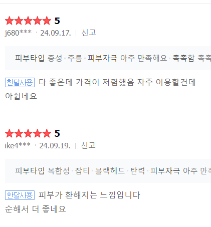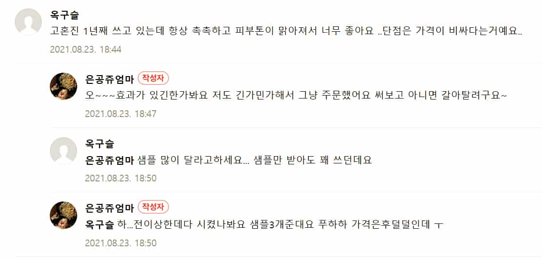 실제 후기를 보면 알 수 있듯이 이미 사용해보신 분들은 재구매를 하시는 걸로 봐서 효과가 괜찮다는 것을 짐작할 수 있었는데요. 단순히 광고만 진행하는건 아닌가 생각이 들었지만, 사용감도 좋고 꾸준하게 사용해볼 생각이다라는 후기가 있는만큼 효과를 기대해봐도 좋을 것 같습니다.